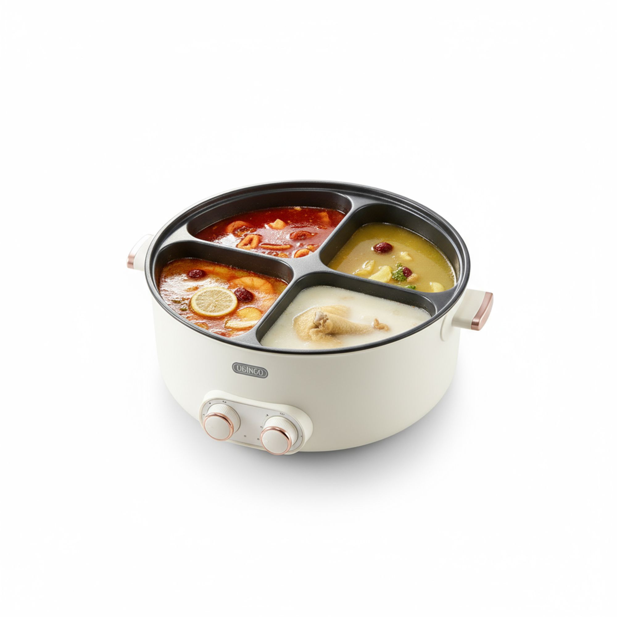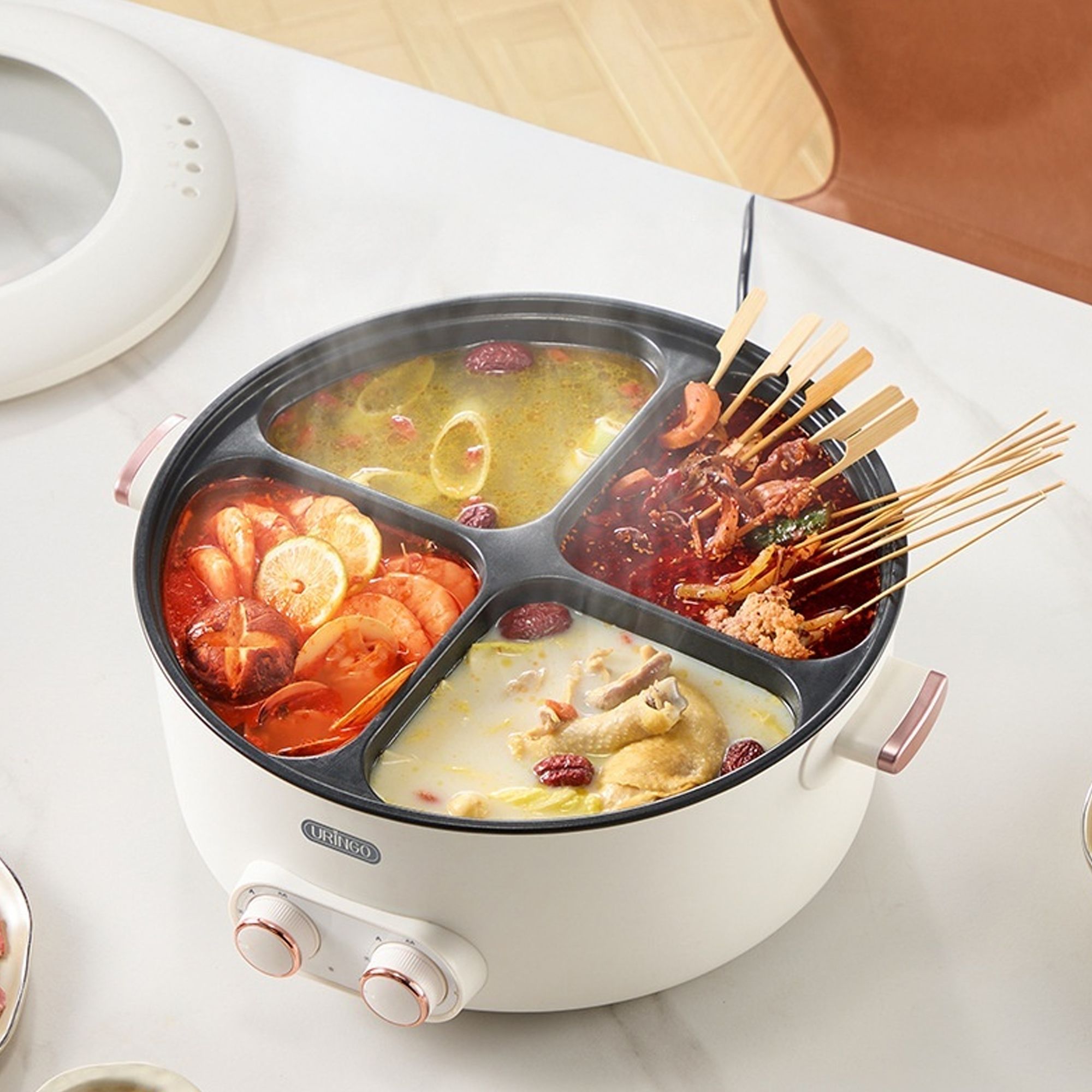 مع وعاء الطهي الكهربائي بأربع شبكات سعة 6 لتر تقدر تحضّر عدة أكلات مع بعض بسهولة. تصميمه الذكي بأربع أقسام يخليك تطبخ أو تسخن أكثر من طبق في نفس الوقت، ويخلي الأكل ساخن وجاهز للتقديم مباشرة على الطاولة، مثالي للتجمعات العائلية والولائم.